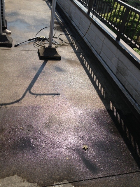 雨漏れしたとのことでベランダウレタン防水します。先ずは汚れ落とし。